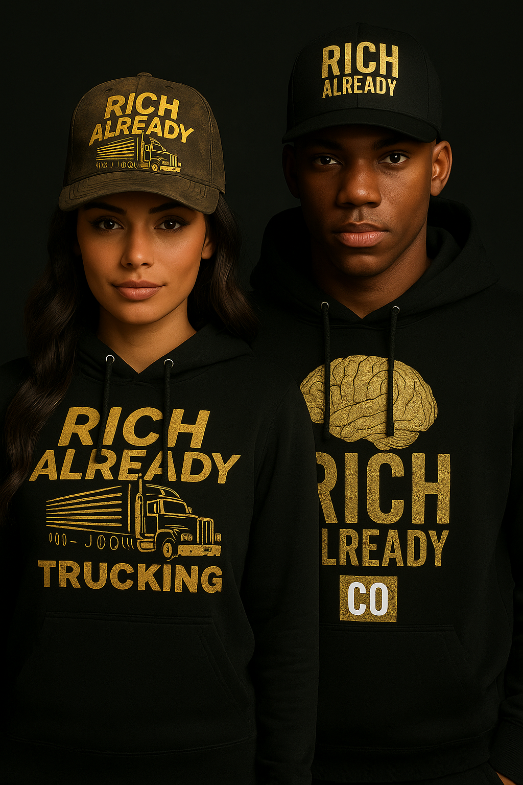Born from long nights on the road and a vision bigger than the 18-wheeler behind it, Rich Already™ blends motivational streetwear with the grit of trucking culture. Every piece we drop represents self-belief, discipline, and the idea that you’re already rich — in mindset, in potential, in purpose.